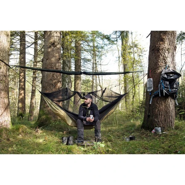Mit der Tarp Sock verstaut man einfach und schnell das Hängemattentarp ohne es komplett abzubauen. Einfach das Tarp einrollen und die Tarp Sock von beiden Seiten drüberziehen – Fertig! Wird das Tarp wieder benötigt, schiebt man die Tarp Socks einfach zur Seite. Die Tarp Sock besteht aus 2 Teilen. Kombinierbar mit Hängematten-Tarps mit einer Firstlänge von max. 400 cm. Auch zur Verstauung einer Ultraleicht-Hängematten nutzbar.Art.-Nr.: 1488002