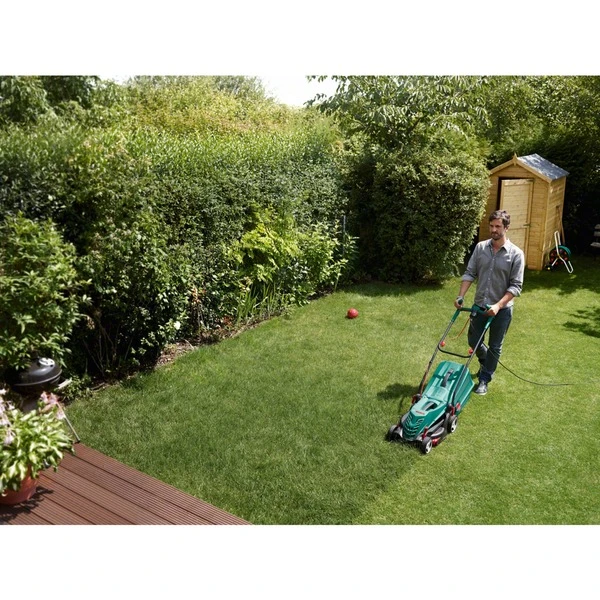 Der Bosch ARM 34 ist ein leistungsstarker Elektro-Rasenmäher mit 34 cm Schnittbreite. Sein 1.300-Watt-Powerdrive-Motor gewährleistet einen zuverlässigen Schnitt, selbst unter schwierigsten Umständen. Ergonomisch geformte und verstellbare Griffe (Ergoflex-System) sorgen für eine bessere Körperhaltung und Entlastung der Muskeln beim Mähen. Der innovativer Rasenkamm des ARM 34 ermöglicht randnahes Schneiden an Mauern, Beeten und Rasenkanten. Das relativ leichte Gewicht und der integrierte Tragegriff ermöglichen einen einfachen Transport. Zur platzsparenden Aufbewahrung lässt sich der Holm einklappen und die Grasfangboxen stapeln.Art.-Nr.: 1130486