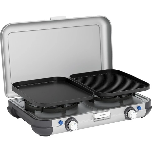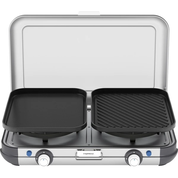 Der neue Camping Kitchen 2 Grill & Go CV von Campingaz ist ein kompakter und vielseitiger 2-Flammen-Herd mit abnehmbarem Grillrost und Planchaplatte. Er bietet die nötige Flexibilität, verschiedene Gerichte zu kochen oder zu grillen. Egal, ob auf einem Abenteuer in der Natur oder mit Familie und Freunden bequem zu Hause, der Camping Kitchen 2 Grill & Go CV wird allen Anforderungen gerecht. Der Camping Kitchen 2 Grill & Go ist mit der Even Temp-Technologie ausgestattet, die es ermöglicht Speisen gleichmäßig über der gesamten Kochfläche zu garen. Dank dieser Technologie werden mehr als 250°C und optimale Hitzeverteilung auf der Grillfläche erreicht.Art.-Nr.: 1863419