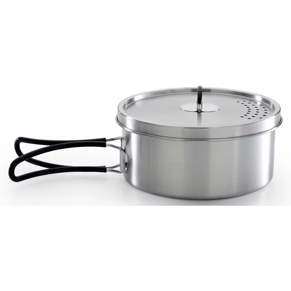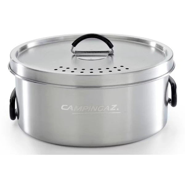 Das hochwertige Trekking-Geschirrset 2197185 von Campingaz ist leicht, sehr kompakt und robust. Die Töpfe und der Deckel sind aus Edelstahl (AISI 304) gefertigt und mit Silikongriffen ausgestattet. Das Set ist leicht zu reinigen und rostet nicht. Es enthält einen Topf, einen Siebdeckel und eine Pfanne.Art.-Nr.: 100030949