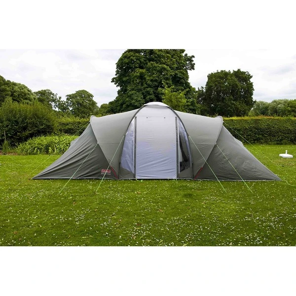 Das Ridgeline 6 Plus von Coleman ist ein 6-Personen-Kuppelzelt mit beidseitigem Tunnelanbau, zwei Schlafkabinen und großzügigem Wohnraum mit guter Kopffreiheit und Stehhöhe dank der zentralen Kuppelkonstruktion. Die beiden sich gegenüber liegenden Schlafkabinen ermöglichen ein Maximum an Privatsphäre und sind aufgrund der Tunnelkonstruktion besonders windstabil. Das Zelt eignet sich besonders gut für längere Campingaufenthalte. Der verschweißte, wasserdichte PE-Boden hat eine hochgezogene Kante als Schutz vor Feuchtigkeit und Insekten. Das Ridgeline 6 Plus bietet zwei Eingänge, zwei Ventilationsklappen an der Kuppelspitze und zwei Innentaschen.Art.-Nr.: 1793801