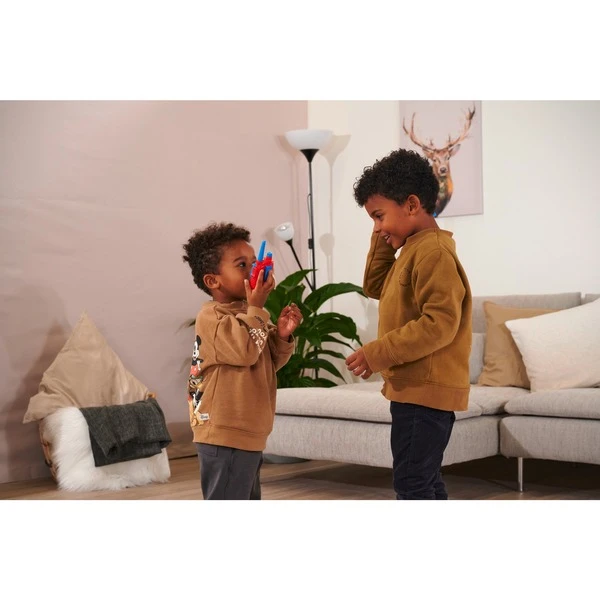 Dickie Toys Walkie-Talkies – Auf in das nächste Abenteuer. Für kleine und große Entdecker ist es enorm wichtig, immer gut informiert zu sein. Dank der handlichen Funkgeräte ist man jetzt immer erreichbar und in Zukunft können alle wichtigen Informationen schnell und unkompliziert ausgetauscht werden. Sichere Kommunikation ist das A und O: Dank der knalligen Farben ist sofort klar, dass dieses Walkie Talkies speziell für Kinder konzipiert wurden. Viele bunte Details bieten zusätzliche Anreize für kreatives Spielen. Die einfache Handhabung erlaubt es zudem bereits den Kleinsten, das lustige Walkie-Talkie zu bedienen. Ein einfacher Knopfdruck reicht aus, um die Übermittlung der gesprochenen Worte zu beginnen. Die Lautsprecher der Funkgeräte besitzen eine kindgerechte Lautstärke, um das empfindliche Gehör der Kinder zu schützen. Das robuste und extra verstärkte Gehäuse verzeiht auch so manchen Sturz. Die Form und Größe der Kinderfunkgeräte wurde speziell an kleine Kinderhände angepasst um eine ideale Ergonomie zu bieten. Zusammen mit dem geschützten Batteriefach und der Rauschunterdrückung für Hintergrundgeräusche sind die Dickie Toys Walkie-Talkies die idealen Funkgeräte für kindgerechtes Rollenspiel.Art.-Nr.: 1915466