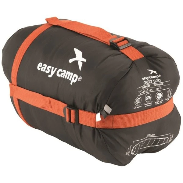 Der Easy Camp Schlafsack Orbit 300 mit Außenmaterial aus 210T Polyester mit Prägedruck (100% Polyester) und Innenbezug aus 190T Micro Polyester gebürstet (100% Polyester) besitzt eine anatomisch geformte Kapuze mit Zugband. Auch der Wärmekragen kommt mit einem Zugband. Gefüllt ist der Schlafsack mit 2x 150 g/m2 Hollowfiber (100% Polyester). Der Reißverschluss bietet einen Einklemmschutz und eine komplette Abdeckung. In der Innentasche kann man beispielsweise seine Wertsachen verstauen. Die Auslieferung erfolgt inklusive Oxford Polyester Kompressionsbeutel für einen kompakten Transport.Art.-Nr.: 1861978