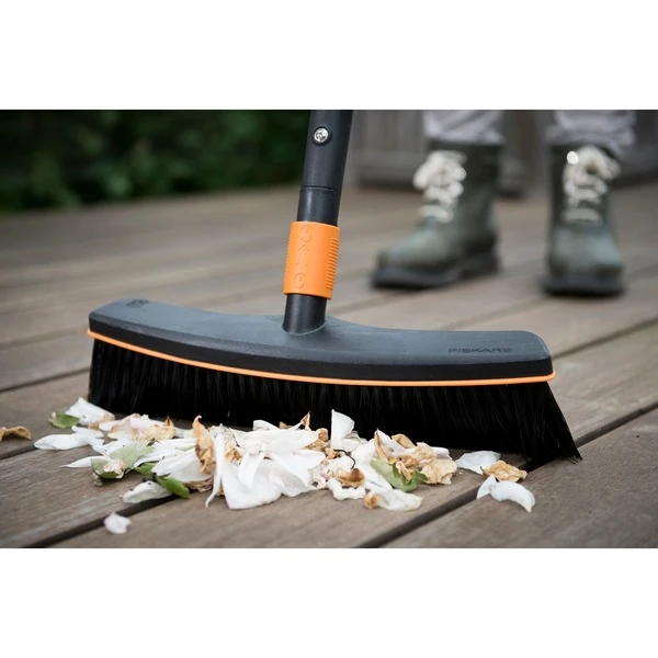 Der QuikFit Straßenbesen von Fiskars eignet sich insbesondere für den Einsatz mit dem QuikFit Stiel Graphit. Der QuikFit Straßenbesen besteht aus glasfaserverstärktem Kunststoff. Aus diesem Material gefertigte Produkte sind sehr stabil, wodurch sie auch langlebig und leicht sind. Die hochwertige Besteckung dieses Werkzeugs ist ebenfalls aus Kunststoff gefertigt und erzielt eine sehr gute Reinigungswirkung. Dieser Besen eignet sich vor allem zum Entfernen selbst kleiner Schmutzpartikel. Er leistet hervorragende Arbeit beim Fegen großer Flächen im Garten und am Haus. Durch seine Breite von 38 Zentimetern können große Flächen mit einem Mal gefegt werden. Das Gewicht des Fiskars QuikFit Straßenbesens beträgt 370 Gramm. Art.-Nr.: 1412568