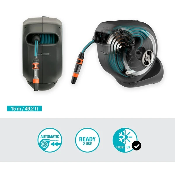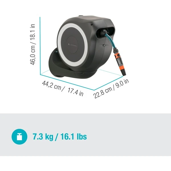 Kein Bücken, kein Kurbeln und keine schmutzigen Hände, das schätzen Gärtner an den GARDENA Wand-Schlauchboxen. Darin ist der Schlauch durch die integrierte Schlauchführung immer gleichmäßig aufgerollt und jederzeit schnell einsatzbereit. Die Wand-Schlauchbox RollUp S lässt sich um mehr als 180° schwenken. Mit den kurzen Arretierstopps kann der Schlauch auf die gewünschte Länge ausgezogen werden. Dank RollControl genügt nach Gebrauch ein kurzer Zug am Schlauch und er wird mit gleichmäßiger Geschwindigkeit und sicher automatisch wieder eingerollt. Ein weiteres Plus: An der Wandhalterung lassen sich Spritzen, Brausen und Waschbürsten griffbereit aufbewahren. Die Wand-Schlauchbox RollUp S ist frostsicher und kann das ganze Jahr über draußen an ihrem Platz bleiben.Art.-Nr.: 1688194