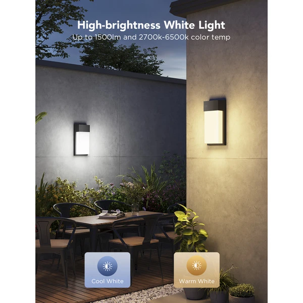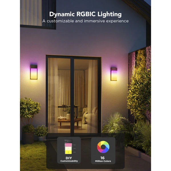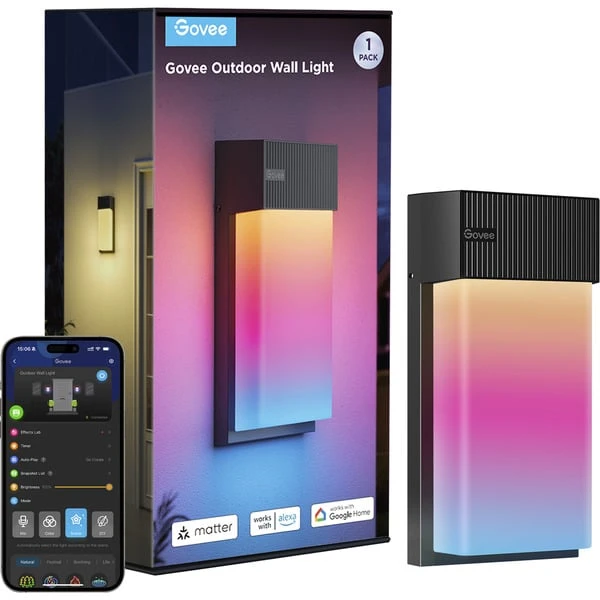 Beleuchte deinen Außenbereich mit der Govee Außenwandleuchte und schaffen so ein warmes und einladendes Ambiente für Partys oder abendliche Aufenthalte im Garten oder auf der Terrasse. Diese wetterfeste Außenleuchte ist mit einem robusten Aluminiumgehäuse ausgestattet und hält Temperaturen von -20 bis 45°C stand. So steht steuerbare, farbige Außenbeleuchtung das ganze Jahr über zur Verfügung – einstellbar über die Govee Home App, per Sprachsteuerung und kompatibel mit Matter lassen sich so vielseitige Lichteffekte, auch zeitgesteuert erzeugen. Dabei arbeitet diese Leuchte mit einem Lichtstrom von bis zu 1500 Lumen und kann dank RGBICWW-Technik gleichzeitig drei unterschiedliche Farben horizontal anzeigen.Art.-Nr.: 100143240