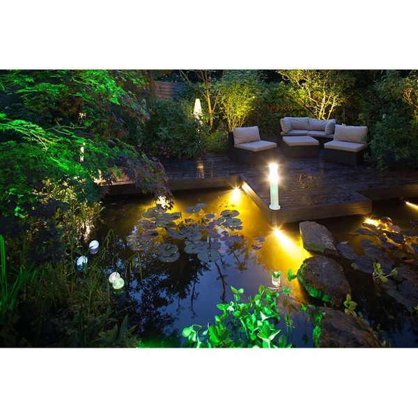 Die SMART LIGHTS Uferleuchte 7 Watt erzeugt stimmungsvolles Ambiente im Garten, neben dem Pool oder am Gartenteich. Diese LED-Leuchte mit beschichtetem Aluminiumgehäuse ist wetterfest und erzeugt warmweiße Beleuchtung mit einem Lichtstrom bis zu 300 Lumen. Sie wird mit einem 3 Meter langen Anschlusskabel geliefert und lässt sich leicht in ein Lichtsystem aus verschiedenen Heissner-Produkten integrieren.Art.-Nr.: 1754971