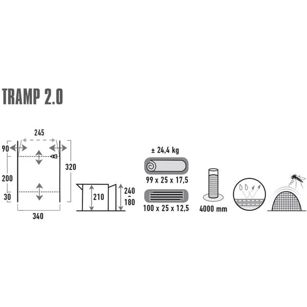Das Busvorzelt Tramp 2.0 von High Peak ist ein klassisches freistehendes „Drive Away“ Steilwandzelt. Das praktische „Drive Away Zip System“ ermöglicht ein leichtes An- und Abdocken des Fahrzeugs mittels Reißverschluss. Das Vordach schützt vor Regen und bietet Schatten. Die Verandafront lässt sich je nach Wetterlage bis zur Mitte oder ganz öffnen. Die Bodenwanne kann an der Front herunter geklappt werden und verhindert Stolperfallen. Zwei Klarsichtfolienfenster mit innenliegenden Reißverschluss-Fensterklappen lassen Licht ins Zelt, und die Gaze-Seitentür aus extra starkem, reißfestem 150D „Superfine“ Moskitonetz sorgt für mehr Bewegungsfreiheit und Belüftung. Die innenliegende Reißverschluss-Fensterklappen können je nach Wunsch und Wetterbedingungen bedient werden und belüftet das Tramp 2.0 auch an regnerischen Tagen. Der Wannenboden und der PVC-Faulstreifen verhindern das Eindringen von Schmutz und Nässe. Der Wannenboden kann herausgenommen und leicht gereinigt werden. Die verschließbare Rückwand ist 50/50 teilbar und passt in die Easy Stow Away Tasche, so entfällt das lästige Aufrollen. Die extra robusten Reißverschlüsse mit Abdecklappen und Regenrinnen sorgen für doppelten Schutz gegen Feuchtigkeit, und die neongelben Abspannleinen und Sturmbänder sind auch in der Dämmerung noch gut sichtbar.Art.-Nr.: 1692136
