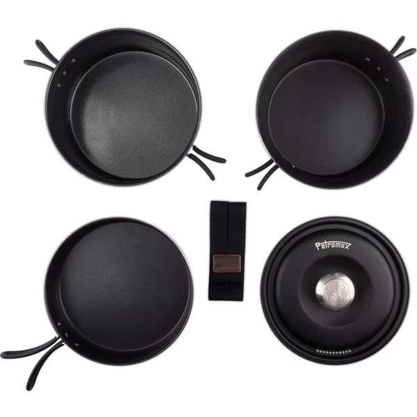 Das Dimego Camping Topfset von Petromax überzeugt durch Funktionalität und Qualität. Dank seiner innovativen Keramikbeschichtung bleibt nichts haften, und mit der praktischen Stapelfunktion ist das Set platzsparend und leicht zu transportieren. Die wärmeisolierten Griffe bieten einen sicheren Halt, und der Deckel des Sets verfügt über eine praktische Ausgießhilfe, die das Servieren der Gerichte vereinfacht. Mit dem beiliegenden Transportband werden die Töpfe sicher zusammengehalten, egal ob auf Reisen bist oder im Rucksack. Das vielseitige Topfset Dimego ist aber nicht nur für Camping-Abenteuer gemacht, sondern auch perfekt für den Gebrauch zu Hause auf allen Herdarten, auch Induktion, geeignet. Mit seiner robusten Konstruktion und seinen durchdachten Funktionen ist das Dimego Camping Topfset die ultimative Wahl für Camper, Bushcrafter, Angler, Festivalgänger und alle, die die Freiheit des Kochens und Essens auf Reisen und im Freien lieben.Art.-Nr.: 100100188