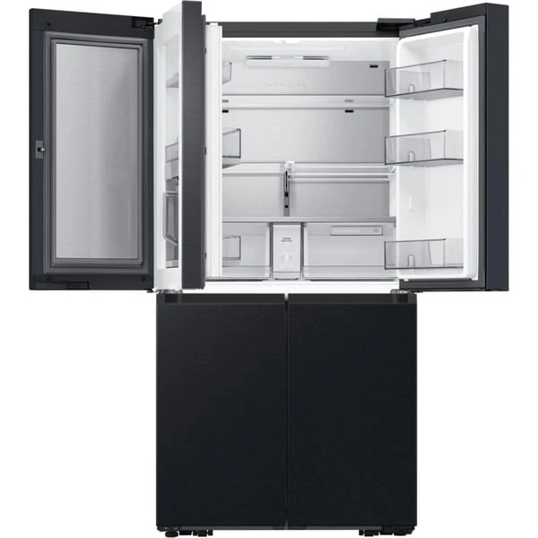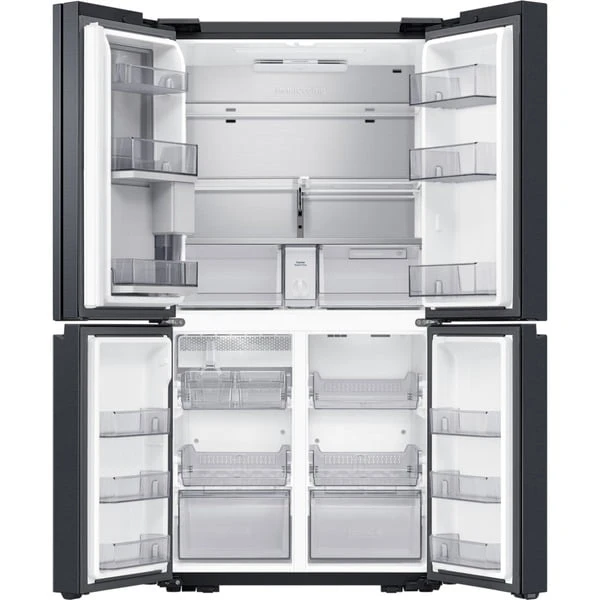 Der Multi-Door-Kühlschrank SAMSUNG RF65DG960EB1EF ist mit einem Gesamtnutzinhalt von 646 Litern optimal für den großen Haushalt geeignet und bietet jede Menge Komfort. Der 396 Liter umfassende Kühlbereich bietet auf vier Abstellflächen, davon zwei flexibel, in zwei Obst-/Gemüseschubladen sowie in sechs Türfächern jede Menge Platz für die übersichtliche Lagerung frischer Lebensmittel. Die Food Showcase Tür ermöglicht einen schnellen und unkomplizierten Zugriff auf bevorzugte Getränke und Lebensmittel. Der Gefrierbereich mit NoFrost+-Technologie gegen Eis- und Reifbildung ist 250 Liter groß und stellt für Gefriergut vier Abstellflächen, zwei Schubladen sowie sechs Türfächer zur Verfügung. Die Cool Select+ Taste bietet fünf mögliche Temperatureinstellungen für das Gefrierteil: Es lässt sich als Kühlschrankerweiterung für Getränke (4 C), für Obst und Gemüse (2 °C), Fisch und Fleisch (-1 °C), zum sanften Auftauen (-5 °C) oder standardmäßig als Gefrierbereich (-15 °C bis -23 °C) nutzen. Der RF65DG960EB1EF verfügt im über einen griffbereiten, spülmaschinenfesten, BPA-freien Pitcher, der automatisch mit gefiltertem Wasser aufgefüllt und mit Früchten oder Kräutern aromatisiert werden kann. Dank des Dual Ice Makers liegen nicht nur Eiswürfel sndern auch Ice Bites bequem bereit, sodass man in Kombination mit dem Pitcher für jeden Anlass gut gerüstet ist. Über den AI Energy Mode in SmartThings Energy lässt sich ganz einfach der tägliche, wöchentliche und monatliche Stromverbrauch überprüfen und der Energieverbrauch des Geräts um bis zu 15 % reduzieren. Darüber hinaus überzeugt der RF65DG960EB1EF mit PowerFreeze- und PowerCool-Funktion, Urlaubsschaltung, Metal Cooling, Smart Sensor und Digital Inverter Kompressor. Mit einem Stromverbrauch von 368 kWh im Jahr ist der RF65DG960EB1EF in die Energieeffizienzklasse E eingestuft.Art.-Nr.: 100052512